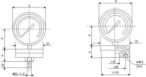 :0~40,-40~0,±20KPa規格承壓部尺寸D1;為φ85
