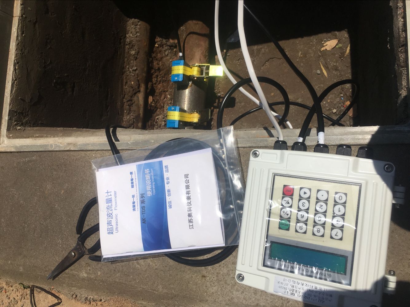 (5)把探頭牢牢地貼在管壁上,用布帶或鋼帶固定探頭(注意:兩探頭的發射方向須相對)。