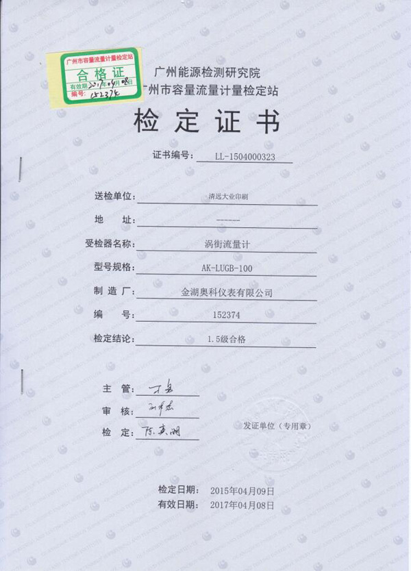 廣州能源檢測(cè)研究院鑒定證書